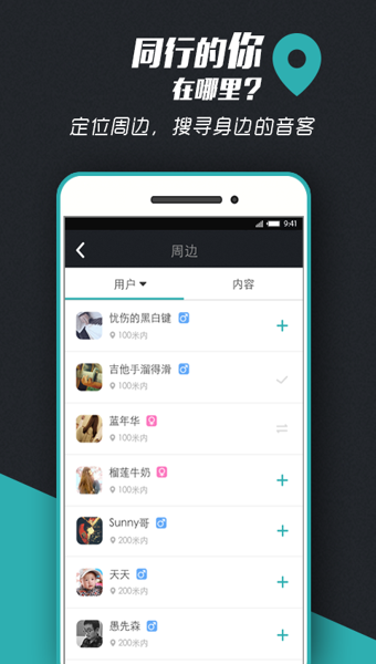 蝌蚪音客的"身边"功能帮助你轻松找到音乐伙伴。无论是寻找志同道合的乐队成员,还是向专业音乐人请教学习,都能在这里实现。平台汇聚了各类音乐爱好者,从初学者到专业音乐人,让音乐交流不再有距离。通过精准的匹配系统,让你快速找到最适合的音乐伙伴,共同探索音乐世界的无限可能。