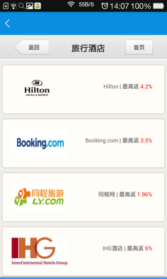 4.通过登录飞客返利网,会员去IHG、希尔顿、万豪,携程等官网下单能够获得一定程度的现金返还,平台独家合作的200+家奢侈酒店品牌更提供专属礼遇,包括房型升级、延迟退房等增值服务。