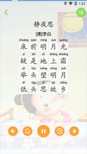 点击进入单首诗学习页面,可欣赏动画插图,收听专业朗诵。