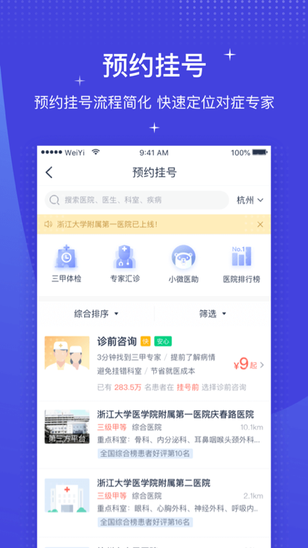 1、【预约挂号】账号来源覆盖70%以上三级医院,连接30个省市117个医疗联盟,提供VIP账号来源提醒、专属客服等服务,帮您摆脱挂号烦恼轻松排队、预约登记。系统支持智能号源监控,自动抢号功能大大提高挂号成功率。