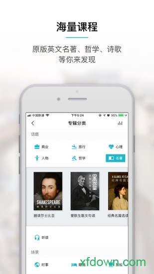 课程每日更新,内容涵盖多个领域,满足不同学习需求。慢生活系列包括《大品牌小故事》、《替你读书》等轻松有趣的课程;通职场系列如《商业制霸手册》助力职场发展;读经典系列带你领略莎士比亚戏剧和爱默生散文的魅力;懂自己系列通过心理学实验启发思考;看世界系列解读《经济学人》等权威外媒;品中国系列则用英文诠释中国哲学经典。每个课程都由专业团队精心设计,确保内容既实用又有深度。