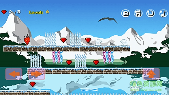 大型宝石关卡难度较高,要控制冰火人协作前行,在不同的属性陷阱前派出相应的冰火小人先进行侦查,确认无恙后,再集体动身。建议先让移动速度较快的火娃探路,遇到冰属性陷阱再换冰娃上场。