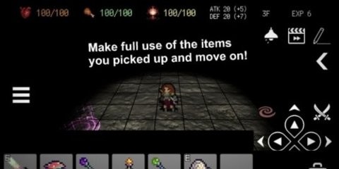 游戏操作非常直观,通过简单的触控就能完成所有动作。移动角色只需点击你想去的方向,点击背包按钮可以打开物品栏,选择并使用道具。当你遇到敌人时,点击攻击按钮就能发起进攻。游戏还设计了独特的"脚下物品"系统,如果你脚下有物品,点击相应按钮就能使用它。特别值得一提的是传送板系统,当你找到传送板时,可以选择是否进入下一层,这个决定往往会影响你的冒险进程。