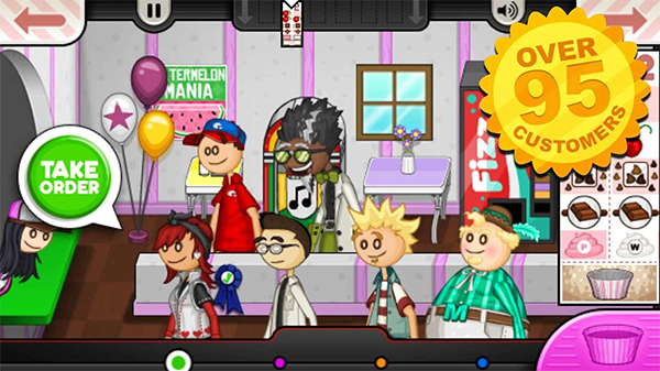 当顾客光临时,点击“TAKEORDER”按钮即可接受点餐请求。随后,你需要根据顾客的要求选择合适的餐盒颜色,并将制作好的蛋糕放入其中。接下来,为蛋糕添加奶油装饰,并尽量按照顾客的喜好调整形状,还原度越高,获得的收益也会更丰厚。完成制作后,系统会根据蛋糕的品质进行评分,表现优异还能获得额外奖励。整个过程中,你需要灵活运用各种工具和食材,确保每位顾客都能满意而归。