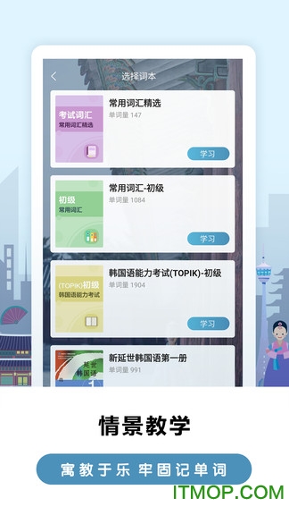 莱特韩语学习背单词是一款专为韩语学习者打造的智能学习应用,尤其适合零基础用户快速入门。通过科学记忆方法和丰富学习资源,帮助用户高效掌握韩语单词、发音及语法。应用内置海量词库,涵盖TOPIK考试词汇及日常用语,配合趣味练习模式,让学习过程充满乐趣。无论你是为了追剧、考试还是工作需要,这款免费软件都能满足你的韩语学习需求,助你轻松实现韩语自由。