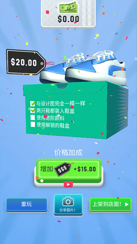 每双鞋的定价都是系统预设好的,你所用到的材料和样式都会影响到价格。高级定制鞋款可以参与拍卖系统,有机会获得超额利润。