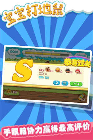 游戏操作极其简单直观,即使是年龄较小的孩子也能快速掌握,同时丰富的内容设计保证了游戏的可玩性。2、每个关卡都经过精心设计,难度循序渐进,只有完成当前关卡的任务才能解锁下一关,激发孩子的挑战欲望。3、游戏中设计了多种色彩鲜艳的地鼠角色,每只地鼠都造型可爱,Q萌的形象深受小朋友喜爱。4、精美的卡通画风搭配活泼的背景音乐,还有各种可爱的小动物角色陪伴,让游戏过程充满欢乐。
