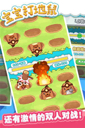 经典模式:玩家可以自由发挥,按照自己的节奏完成各个关卡挑战,体验传统打地鼠的乐趣。2、双人模式:支持两位玩家同时游戏,通过PK比赛看谁打的地鼠更多,增加游戏的互动性和竞技性。3、无限模式:在这个模式下玩家可以尽情打地鼠,直到生命值耗尽,考验玩家的反应速度和持久力。