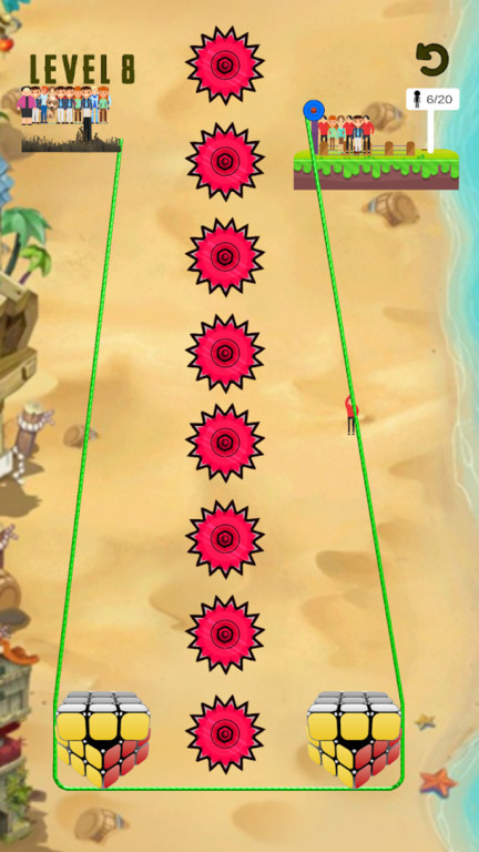 合理的布置关卡并合理绳索,顺利的让小人们下去,每个关卡都经过精心平衡,确保难度曲线平滑上升。