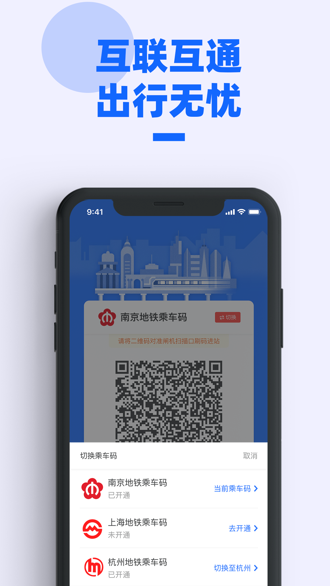 支持南京地铁二维码乘车功能,覆盖全线网所有车站;