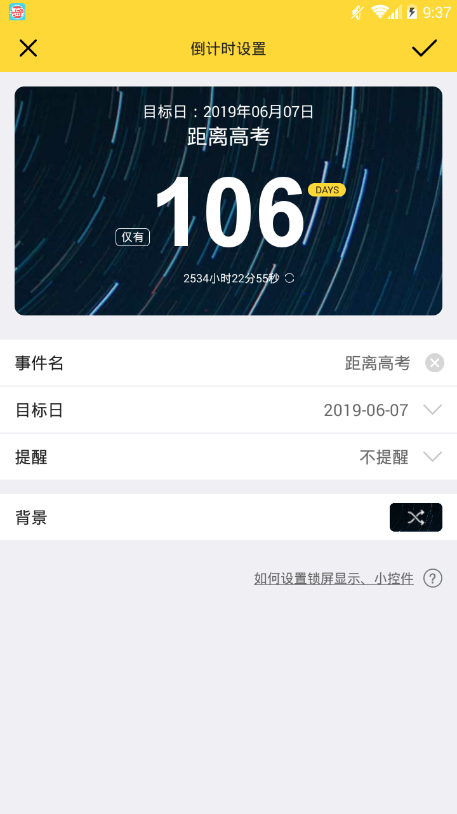 1.高考日期设置:支持灵活设置高考日期,精确显示剩余天数、小时和分钟,让考生对备考时间有清晰认知。