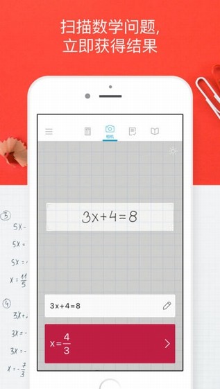 下载安装完成后,打开软件即可使用摄像头直接扫描数学题目,系统会自动对焦并识别题目内容。2、识别完成后,软件会立即显示计算结果,用户可以点击查看详细的解析过程,了解每一步的解题思路。3、除了实时拍摄外,还支持从相册导入已拍摄的题目图片进行识别,方便用户整理和复习。4、点击计算器图标可以进入手动输入模式,支持多种数学符号的输入和计算。5、点击时钟图标可以查看历史记录,回顾之前解答过的题目和解题过程。6、软件还提供了详细的帮助中心,遇到任何使用问题都可以在这里找到解决方案。