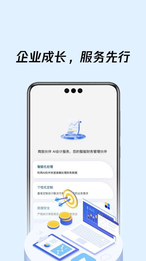 商旅伙伴-AI会计APP是一款专为企业打造的智能财务管理工具,通过人工智能技术赋能会计业务,实现高效、精准的财务数据处理。该软件不仅能自动化处理工商变更、发票管理、薪资核算等日常财务工作,还能深度分析企业运营数据,生成多维度的财务报表,助力企业优化成本结构、提升管理效率。其创新的AI会计引擎可智能识别各类原始票据,自动完成从数据录入到账簿生成的全流程,大幅降低人工出错率。无论是初创公司还是成熟企业,都能通过这款软件获得专业级的财税服务支持,让复杂的财务管理变得简单可控。