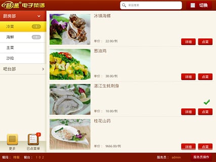 e餐通电子菜谱是由广东因豪信息科技有限公司自主研发的智能点餐系统,采用前沿的数字信息技术,通过稳定的wifi无线传输网络,为用户提供高效便捷的可视化点餐服务。系统基于高性能平板电脑平台开发,充分考虑用户操作习惯,打造流畅自然的交互体验。该解决方案不仅能显著降低餐厅人力成本,提高运营效率,更能通过数据分析功能为餐厅经营决策提供有力支持。目前系统提供iOS和Android双平台版本,适配各类主流平板设备,让顾客通过直观的触控操作享受轻松愉悦的点餐过程。