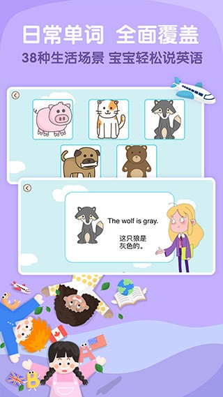 【全方位的学习体系】:整合字母认知、词汇拓展、短句练习、视听训练、绘本阅读、睡前故事、亲子对话等多元化学习模块。通过多感官刺激和场景化教学,全面提升孩子的语言应用能力。