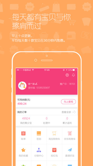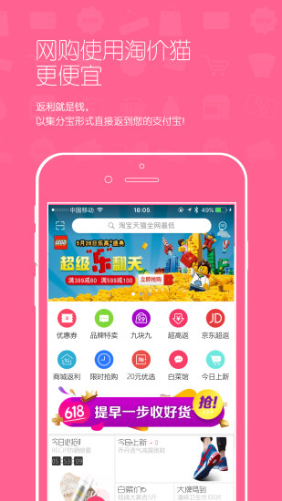 超高返:平台精选畅销大牌商品,每日上新款式,最高返利可达85%,让用户每天都能买到超低价好物;