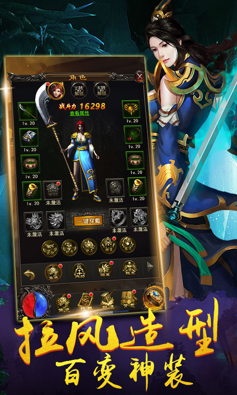 个性化的角色造型搭配,获取橙色装备迅速的提升战力值,一秒就能干掉对手。时装系统提供数百种外观搭配方案,让每个玩家都能打造独一无二的角色形象。