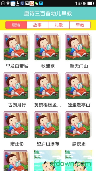 唐诗三百首幼儿早教是一款专为3-6岁儿童设计的国学启蒙应用。这款应用精选了300首经典唐诗,每首诗歌都配有标准拼音标注、精美插图和专业朗读,通过生动有趣的动画形式激发孩子的学习兴趣。应用采用科学的分龄设计,从简单的五言绝句到七言律诗循序渐进,帮助孩子在语言发展黄金期培养良好的语感和文化素养。系统还设有互动背诵、诗词接龙等趣味功能,让孩子在游戏中轻松掌握唐诗韵律,感受中华传统文化的魅力。