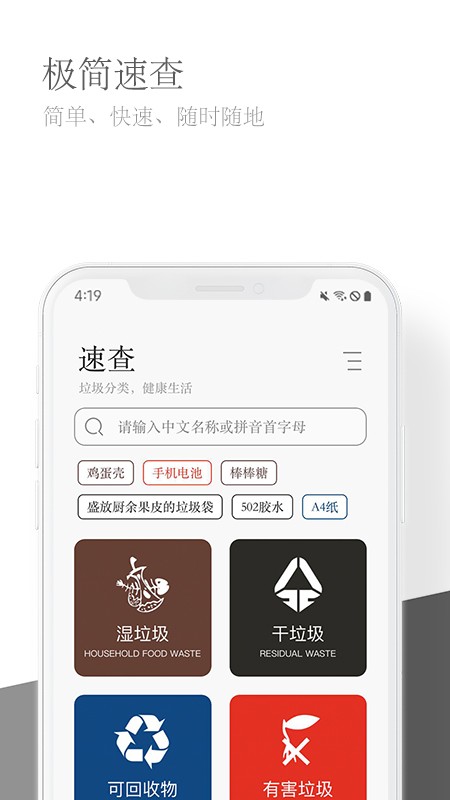 我们坚持"少即是多"的设计哲学,去除一切不必要的干扰元素,打造极简高效的查询体验。首页仅保留搜索框和常用分类入口,让您能在3秒内完成分类查询。智能预测输入功能会根据您输入的首字母自动匹配相关物品,大幅提升查询效率。夜间模式、字体大小调节等人性化设置,确保不同用户都能获得舒适的视觉体验。所有操作都经过数百次用户测试优化,确保每个功能都直观易用。