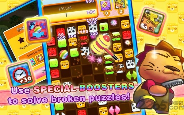 游戏的核心玩法是通过交换相邻宝石的位置,将三个或以上相同宝石连成一线进行消除。消除的宝石数量越多,获得的分数就越高。游戏还设计了多种特殊宝石和强化道具,如炸弹宝石、彩虹宝石等,这些特殊道具能帮助玩家轻松应对高难度关卡。每次完成关卡后,玩家还有机会抽取宠物蛋,收集数百种独特的宠物装饰品来装扮自己的房间。这些可爱的收藏品不仅能提升游戏乐趣,还能向好友展示你的收藏成果。