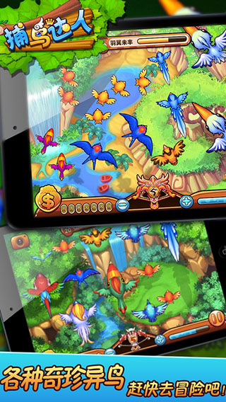 5、微信、微博分享功能,玩家可以将自己的捕鸟成果分享给好友,邀请好友一起参与游戏,共同体验捕鸟的乐趣。