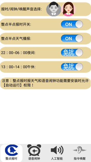 3、智能报时系统不仅提供整点半点报时服务,还能根据您的位置实时播报当地天气状况,包括温度、湿度、PM2.5等详细数据;