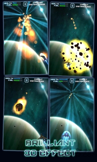 《冲击星系RushGalaxy》是一款画面华丽的太空飞行竞速游戏。玩家将驾驶飞船在壮观的银河系中展开惊险刺激的冒险旅程。游戏完美还原了宇宙空间的浩瀚感,让玩家体验在密集陨石带中高速穿梭的紧张快感。随着游戏进程推进,陨石移动速度会逐渐加快,极大考验玩家的反应能力和操作技巧。通过收集散布在太空中的金币和特殊道具,玩家可以解锁新飞船、延长飞行时间并创造更远的飞行记录。游戏采用创新的重力感应操控方式,玩家只需倾斜手机即可控制飞船方向,点击屏幕还能触发加速和无敌状态,带来简单易上手却又充满挑战的游戏体验。
