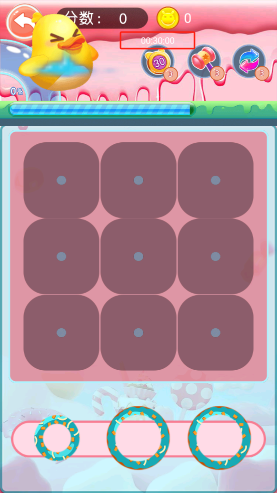 游戏设计了独特的嵌套机制,小的甜甜圈可以巧妙地套进大的甜甜圈内,这种特殊组合能触发连锁反应,带来额外加分。2、消除规则简单易懂,同一排或一列只要出现三个及以上颜色相同的甜甜圈,就能完成消除。3、系统支持特殊消除方式,当大、中、小三个同色甜甜圈相邻时,即使不在同一直线上也能形成消除。4、建议玩家优先消除底层的甜甜圈,这样上方的甜甜圈会自然下落,可能自动形成新的消除机会。5、留意特殊道具的生成条件,合理使用道具可以事半功倍。