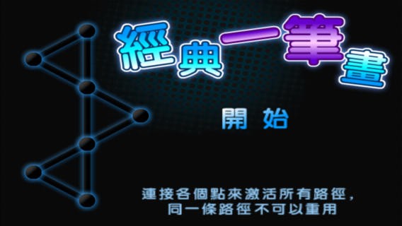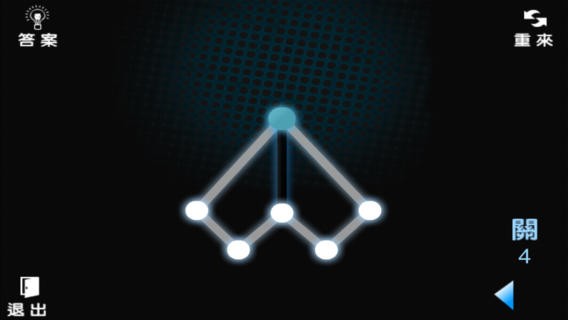 经典一笔画修改版,关卡全开,可以随意查看正确答案。非常炫丽的光影效果,科技感十足的智力游戏,经典的一笔划玩法,让你开动脑筋杀掉大把时间。不要小看这款看上去简单的游戏,足足265个创意关卡让你过足手隐。游戏的规则很简单,点击每个光圈原点来让线段进行连接,但是已经点亮的线段不可以重复连接,直到你把所有的线段都点亮即是闯关成功。