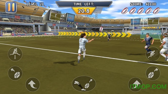 本作是一款基于关卡挑战的橄榄球竞技游戏,玩家需要在限定时间内完成达阵得分的目标,同时要巧妙应对对手的抢球和阻截。游戏提供了多种战术选择,包括运球突破、精准传球以及上踢下踢等专业技巧,帮助玩家突破重重防守。随着关卡推进,游戏节奏会逐渐加快,对手AI也会变得更加智能,需要玩家不断提升反应速度和战术意识。每个关卡都经过精心设计,在关键时刻总会出现强力防守,考验玩家的临场应变能力。通过分析对手团队的弱点并制定针对性战术,你将能突破重重阻碍,向最高分发起冲击。