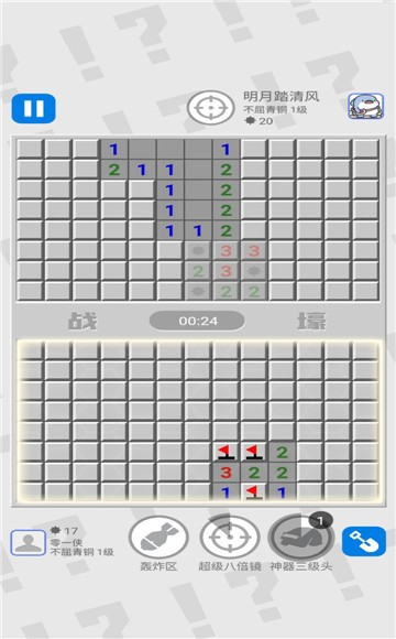游戏提供经典扫雷模式,完美还原Windows系统自带的扫雷玩法,让怀旧玩家重温熟悉的操作体验。而最具特色的乱斗模式则彻底颠覆传统玩法,融入了时下流行的"吃鸡"元素,玩家可以自由选择各种趣味技能和特殊道具。在这个模式下,系统会随机匹配多名玩家同场竞技,通过独特的计分机制和道具系统,将原本单机向的扫雷游戏转变为充满变数的多人对战游戏,每局都能带来不同的惊喜。