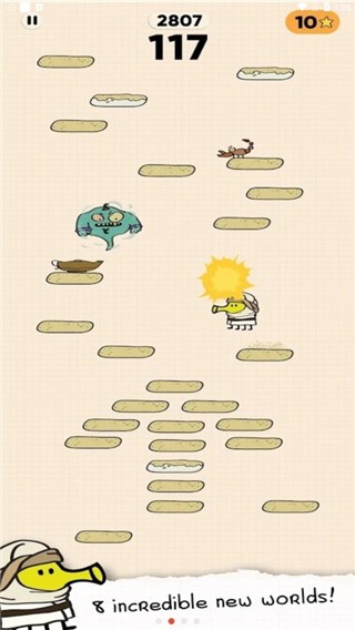 《涂鸦跳跃2》是一款充满童趣与创意的竖版休闲闯关手游,游戏采用明亮鲜艳的卡通画风,将玩家带入一个天马行空的奇幻世界。精致的场景设计融合了清新可爱的元素,搭配活泼俏皮的背景音乐,为玩家营造出轻松愉悦的游戏氛围。简单直观的操作方式让各年龄段的玩家都能快速上手,通过点击屏幕控制角色在层层台阶间跳跃攀升。游戏精心设计了多个风格迥异的主题世界,每个关卡都隐藏着意想不到的惊喜与挑战,让玩家在休闲娱乐的同时也能享受探索的乐趣。