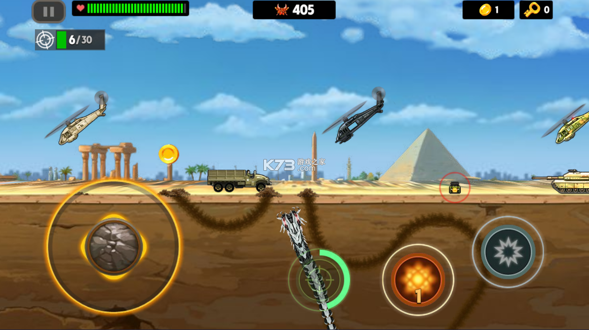 这是一款极具创意的动作冒险手游,玩家将扮演一只来自地下的恐怖巨虫,通过不断吞噬和破坏来强化自身。游戏采用独特的操控方式,玩家需要精准控制巨虫的移动和攻击时机,从地下突袭到地面展开破坏。无论是吞噬人类、摧毁建筑物,还是击落飞机坦克,都能获得极大的满足感。游戏丰富的关卡设计和多样的敌人类型保证了持久的可玩性,而震撼的视觉效果和流畅的操作体验更让这款游戏脱颖而出。