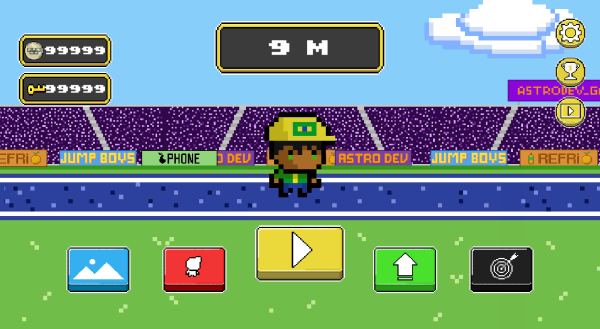 最左侧的蓝色按钮是场景选择功能,玩家可以在这里切换不同的游戏地图。每个地图都有独特的视觉风格和专属BGM,定期游玩不同地图能获得额外奖励。