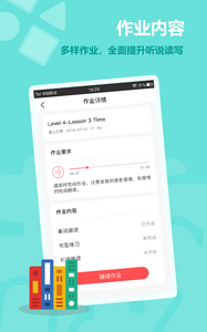 接收教师布置的作业,通过线上、跟读等多种形式,有效巩固课堂所学知识。系统支持多种作业类型,包括听力填空、口语跟读、情景对话等,自动批改功能可即时反馈作业完成情况。家长和老师可通过后台查看详细的学习报告,了解孩子的知识掌握程度。
