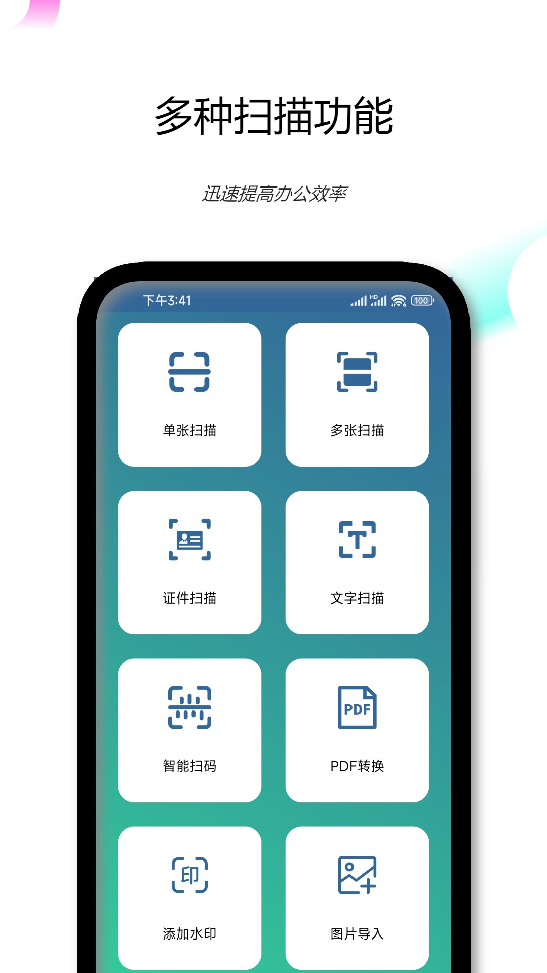 1、快速扫描:PDF文档扫描仪采用智能边缘检测和图像增强技术,能够自动校正拍摄角度并优化图像质量,确保转换后的PDF文档清晰易读。无论是单页还是多页文档,都能在短时间内完成高质量扫描。