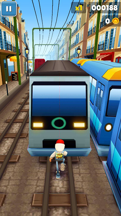 1、开始游戏后,你将操纵角色在地铁车站奔跑,你需要通过滑动屏幕来控制他向左或向右移动;