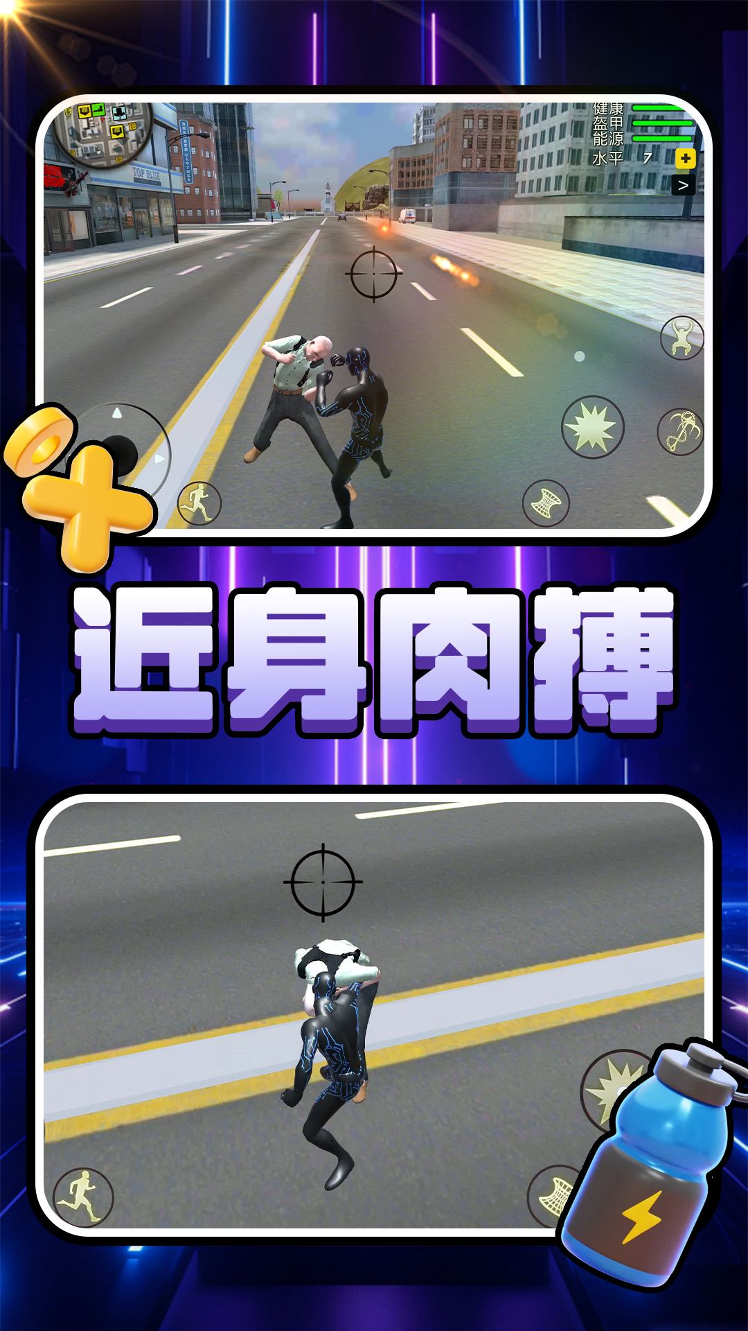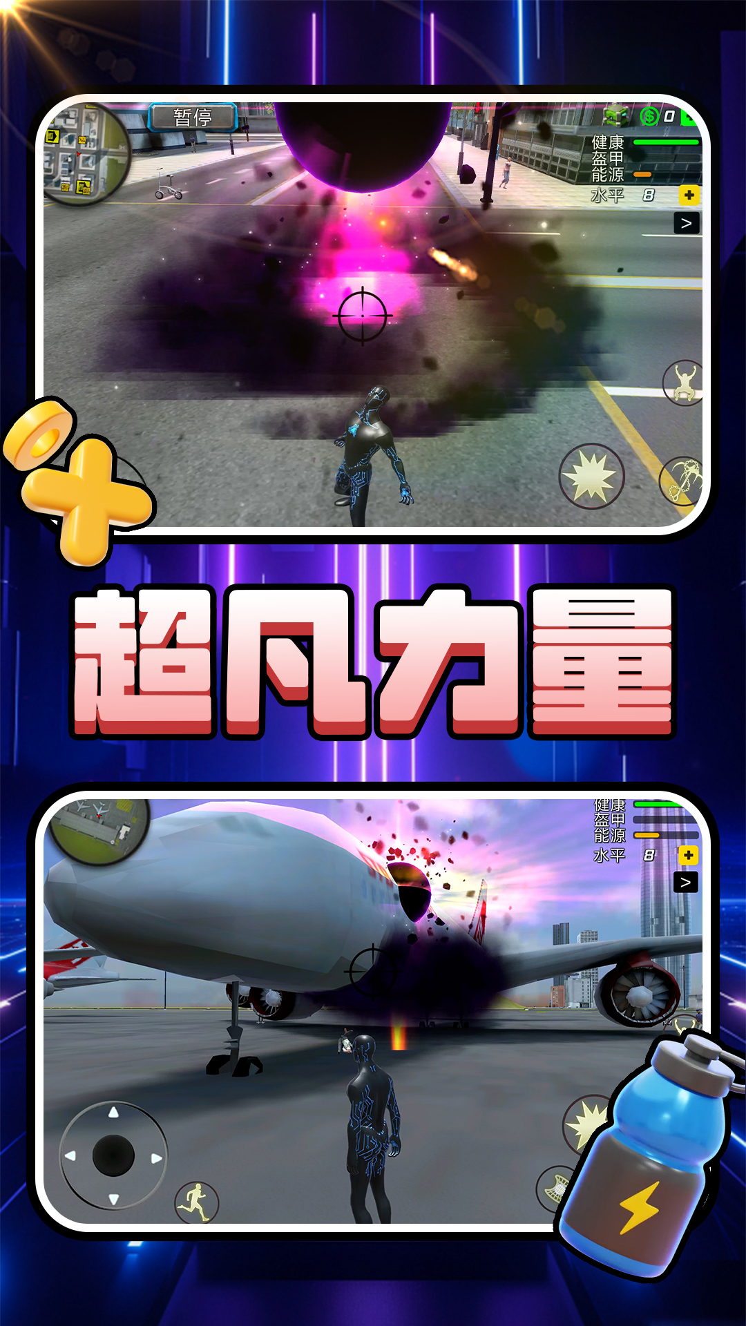 《超级英雄的战斗》是一款充满激情与策略的动作游戏,玩家将扮演一位拥有超凡能力的超级英雄,肩负起保卫城市的重任。游戏采用精美的3D画面和流畅的战斗系统,让玩家体验到拳拳到肉的打击感和炫酷的技能特效。无论是面对成群结队的敌人,还是强大的BOSS,玩家都需要灵活运用技能组合和战术策略,才能取得最终的胜利。丰富的剧情任务和多样化的角色成长系统,为玩家提供了沉浸式的游戏体验。
