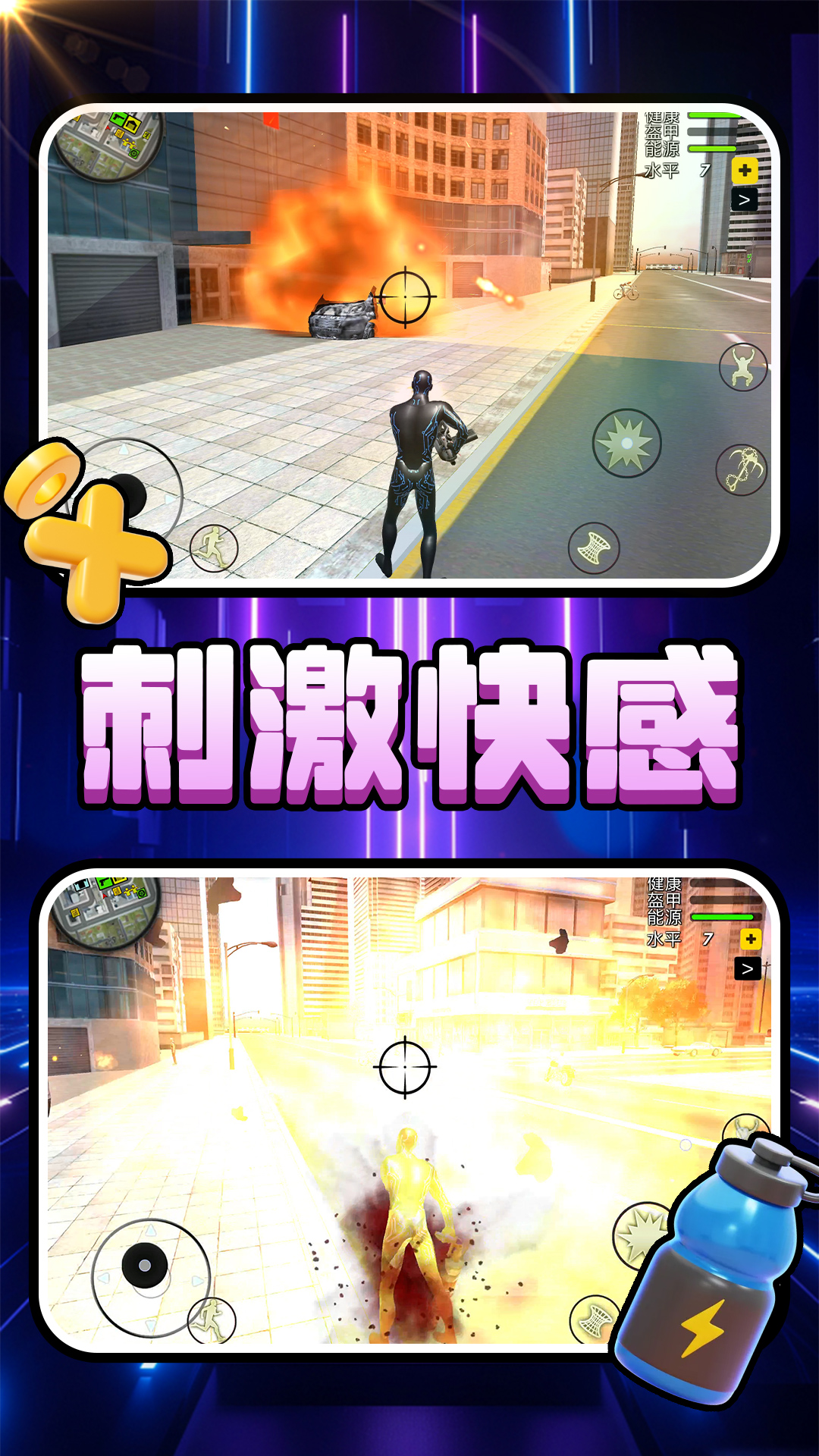 游戏中的战斗系统经过精心设计,每一招每一式都充满力量感,玩家可以感受到超级英雄的非凡实力。通过连击、闪避和格挡等操作,玩家可以打出华丽的连招,击败敌人。不同的英雄拥有独特的技能树,玩家可以根据自己的喜好自由搭配技能,打造个性化的战斗风格。此外,游戏还加入了环境互动元素,玩家可以利用场景中的道具或地形对敌人造成额外伤害,让战斗更加多变有趣。
