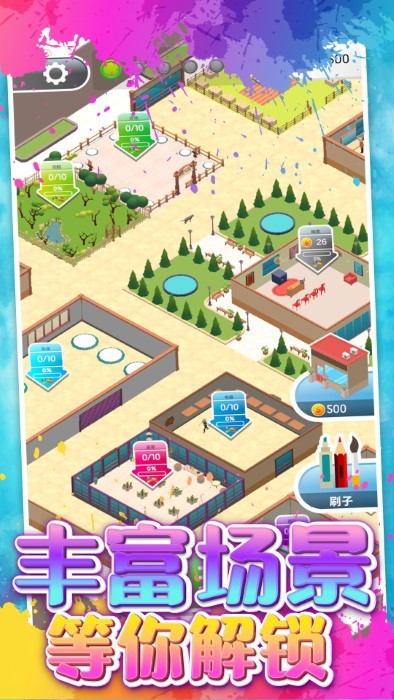 游戏拥有数十个精心设计的场景等待解锁,每个场景都带来全新的创作体验。玩家可以自由搭配各种颜色组合,充分发挥艺术想象力。提供多种专业绘画工具,从基础画笔到特效喷枪应有尽有。支持精准的色彩调配系统,让每个细节都能完美呈现。独特的自由喷绘模式让创作更加随心所欲,打破传统填色的束缚,打造真正个性化的艺术作品。