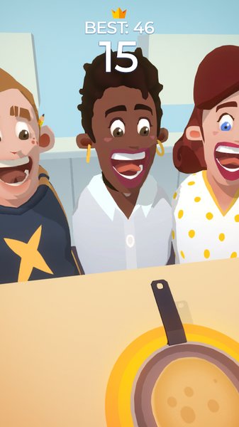 3、游戏的核心玩法要求玩家精准控制力度和时机,当飞饼在空中飞行时,需要实时调整角度确保其准确落入目标位置。物理引擎模拟真实的抛物线运动,让每次投掷都充满变数。玩家必须全神贯注,掌握好松手时机和力度大小,才能让飞饼完美地从一个煎锅转移到另一个煎锅,最终准确送达客人口中。