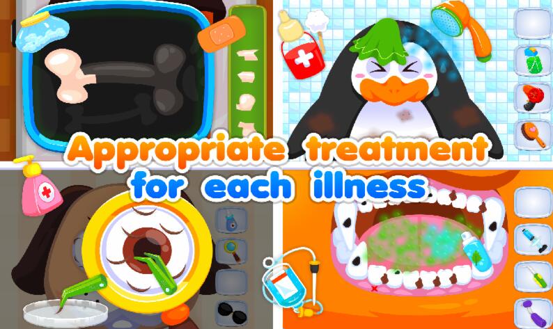 游戏提供了丰富多样的医疗场景:你需要为烹饪时不慎烫伤的小动物进行伤口处理;为发高烧的可爱患者测量体温并开具药方;通过专业的骨科技术为骨折的动物打上石膏;运用牙科器械为牙痛患者解除痛苦。此外,你还需要使用耳镜检查动物的耳道健康,用滴管帮助视力模糊的患者恢复清晰视野。保持医院卫生同样重要,记得定期为患者洗澡清洁。特别要注意过敏体质的患者,需要谨慎选择治疗方案。在护士的协助下,你将成长为世界上最优秀的动物医生,为每一位患者提供最贴心的医疗服务。