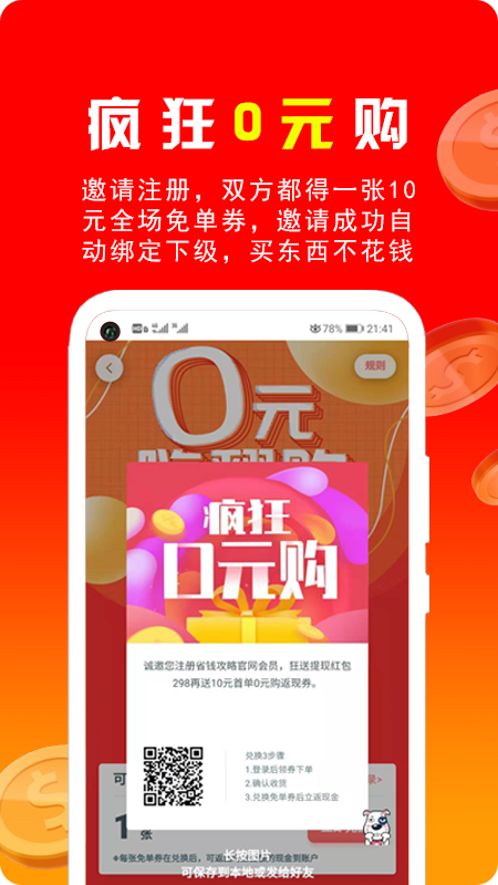 【全】软件囊括全网各大电商平台的优惠券资源,智能查券系统让您一键获取所有可用优惠。无论是淘宝、京东还是拼多多,只要是有优惠券的商品,在这里都能轻松找到。【省】每日更新的大额优惠券全部免费领取,直接抵扣现金使用。这些优惠券经过专业团队严格筛选,确保真实有效,让您享受实实在在的优惠。【赚】除了省钱,用户还能通过分享商品和邀请好友获得丰厚返利。新用户下载即可领取新人红包和免单福利,让省钱和赚钱两不误。【免】0元疯狂购专区提供大量免单机会,通过分享积累免单券,参与超级秒杀活动,享受"返利+额外返"的双重优惠,让您天天都能抢到超值商品。