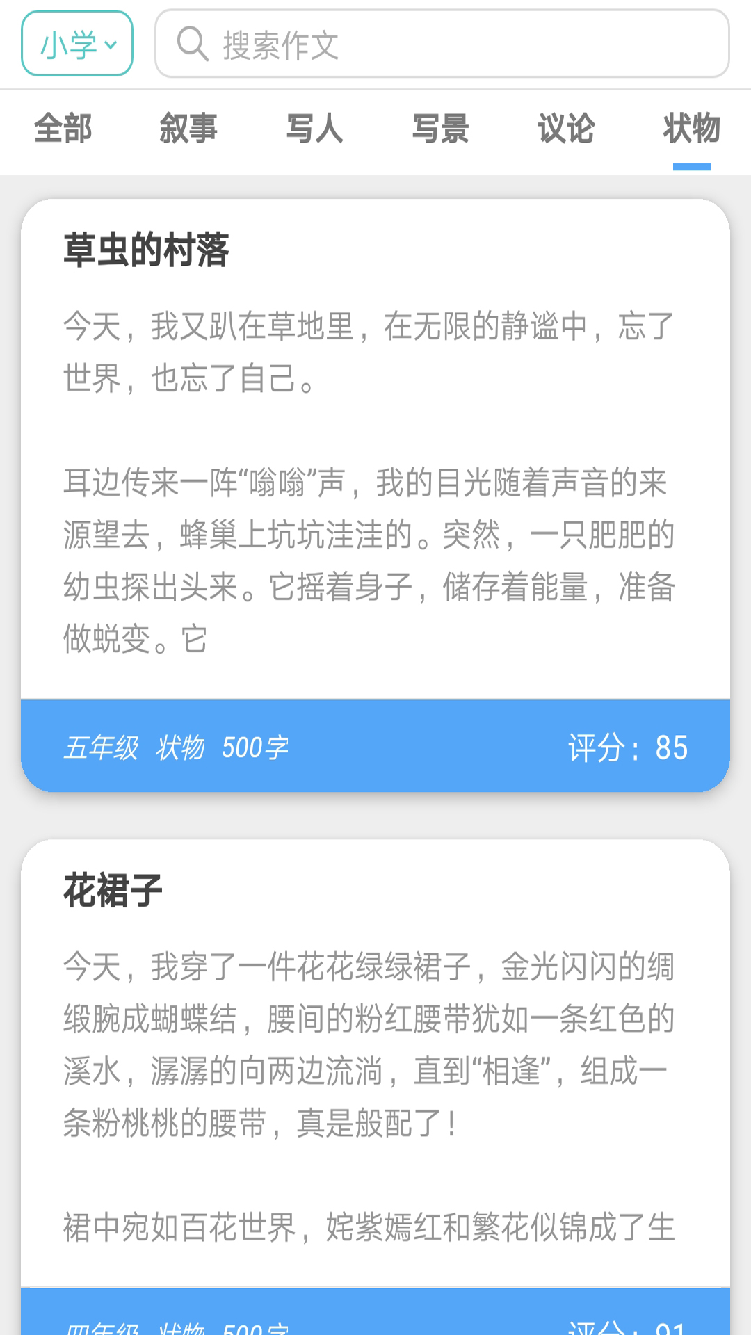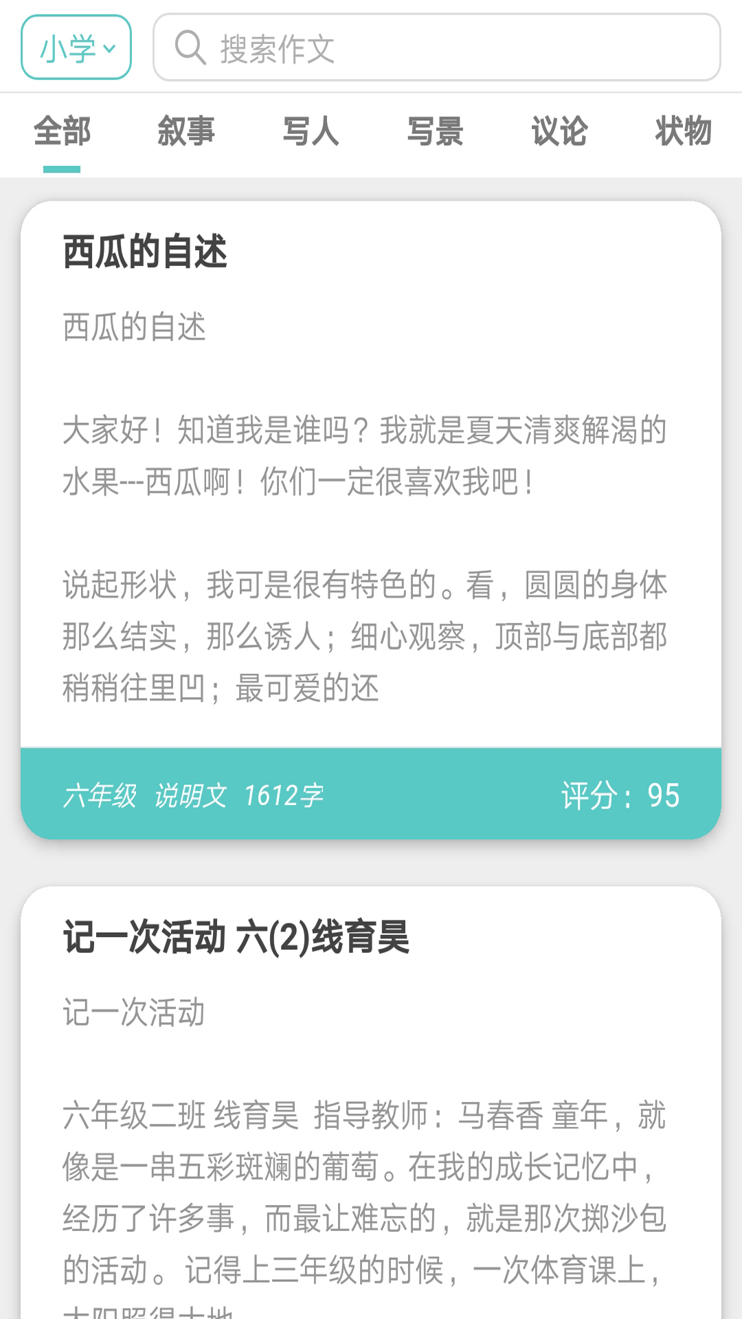 一起中小学作文app是一款专为中小学生打造的写作学习平台,汇集了海量优质作文资源。这里不仅有历年小升初、中考、高考的满分作文和优秀范文,还提供名师详细点评和写作技巧解析,涵盖记叙文、议论文、说明文等各种文体。通过智能分类和精准搜索功能,学生可以快速找到所需素材,学习名家写作手法,掌握考场得分要点。无论是日常练笔还是考前冲刺,这款app都能帮助学生突破写作瓶颈,让作文从"无从下笔"变成"下笔如有神"。