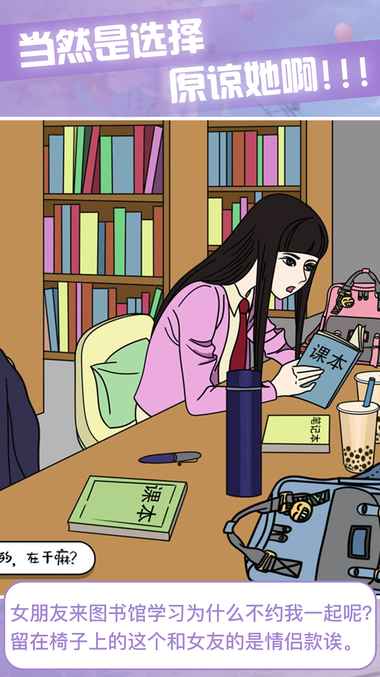 1、游戏采用简洁明快的卡通风格,通过生动有趣的剧情故事展现玩家与渣男之间的情感纠葛,让玩家在轻松的氛围中学习感情知识。