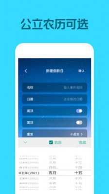 2.倒数日倒计时功能让用户可以精确倒计时重要事件,无论是节日、生日或者其他重要纪念日,都可以提前进行规划和准备。支持设置多个倒计时项目,每个项目都可以单独设置提醒时间和重复周期,确保您不会错过任何重要时刻。