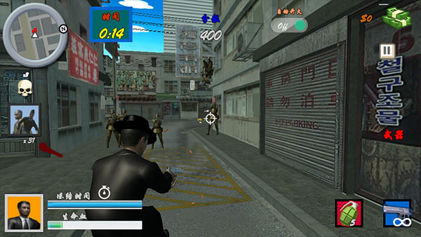 游戏采用经典的右屏射击操作,左边控制瞄准,右边按键开火。敌人会如潮水般从四面八方涌来,考验玩家的反应速度和精准度。建议优先瞄准敌人头部,可以造成更高伤害。同时要注意观察战场环境,合理利用掩体规避敌方火力。