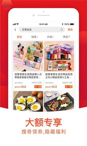 1、优惠券:每日精选上万张大额优惠券,涵盖服饰、数码、家居等全品类商品,最高可省数千元。平台还设有"限时秒杀"专区,提供超低折扣商品。