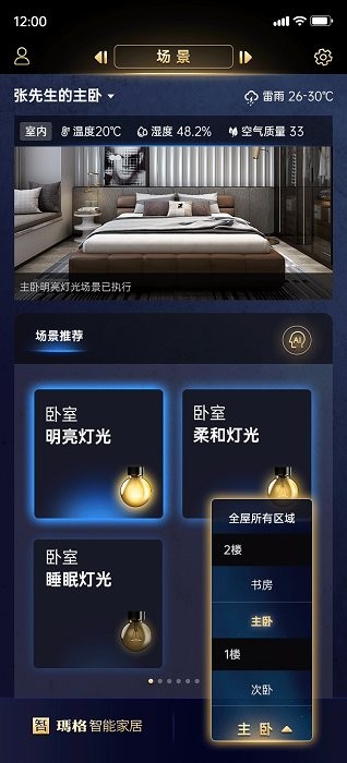 作为全屋智能的中枢神经系统,玛格智能家居实现了设备间的深度互联。通过环境传感器网络,系统能精确监测PM2.5、CO2浓度等18项空气指标,当检测到甲醛超标时自动启动新风系统。安防方面采用军工级加密协议,智能门锁支持3D人脸识别+指纹双重验证,异常开锁会立即触发警报并推送抓拍画面至手机。特别开发的节能算法可学习用户习惯,比如根据天气预报自动调节地暖温度,每年节省约30%能源消耗。所有设备状态均以三维户型图直观展示,老人小孩也能轻松操作。
