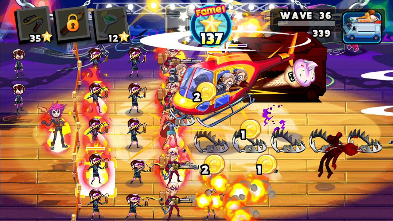 游戏包含40个精心设计的摇滚主题关卡,每个关卡都有独特的挑战和背景音乐;10种不同类型的粉丝角色可供解锁,每个粉丝都拥有特殊能力来协助防御;超过9种威力强大的武器系统,从签名CD到舞台灯光都能成为你的防御利器。游戏还加入了明星技能系统,玩家可以释放特殊技能来扭转战局。随着游戏进程,狗仔队会变得越来越狡猾,你需要不断升级防御策略才能守住自己的隐私领地。